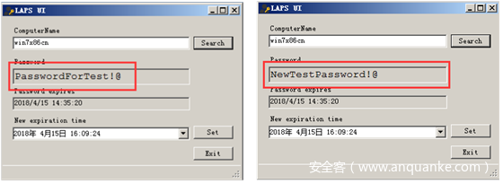 图七 在服务器端使用LAPS UI查看2次修改口令后的结果