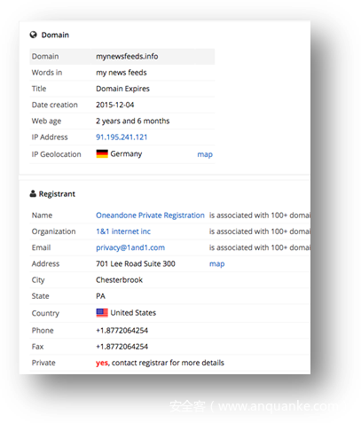 而该域名mynewsfeeds.info历史曾由marchaopn@gmail.com注册,在Hacking Team 2015年7月的泄露事件后,该域名做了隐私保护: