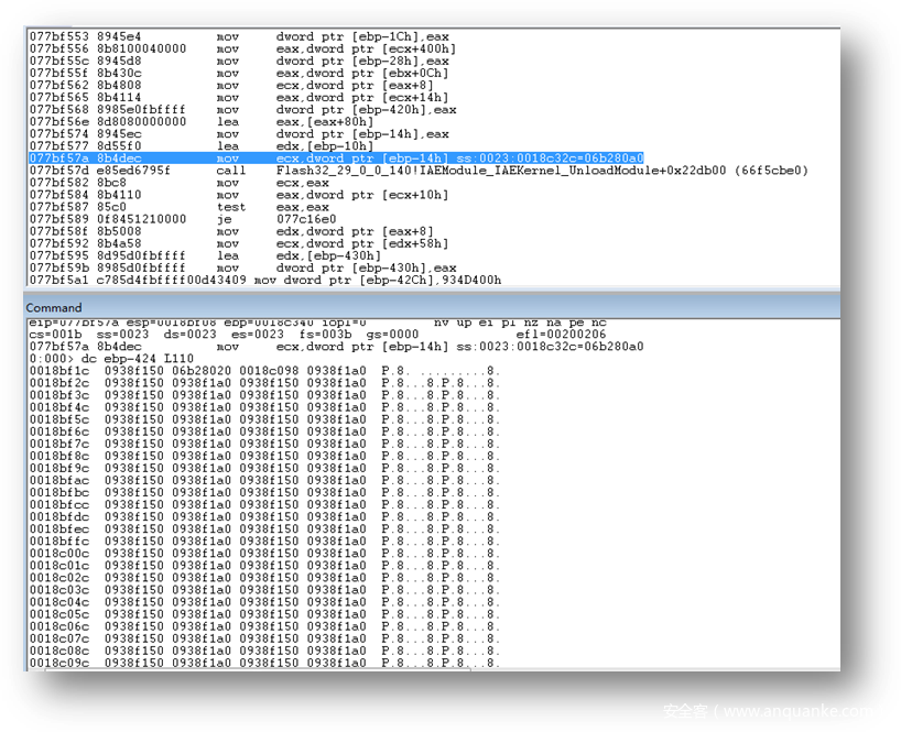 接着内存加载第二阶段的Flash文件,第二阶段的Flash文件中则包含Flash 0day漏洞利用代码: