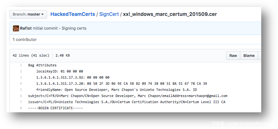 其中marchaopn@gmail.com邮箱注册的签名证书正是Hacking Team所属: