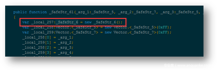 再来看看触发漏洞的代码上下文,其中_SafeStr_6即为上图所示触发漏洞的类实例代码: