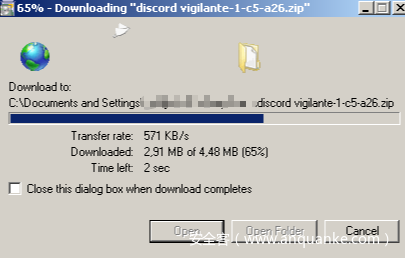 当“Bigben”为0的时候,“Bigben”才会触发其他恶意操作,伪造下载软件(discord vigilante-1-c5-a26.zip)的界面,该下载界面是“Bigben”自绘的,其实并无网络操作,然后再继续进行软件推广,窃取网站账户信息等恶意操作,如下图。