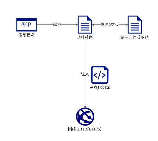 通过使用第三方驱动NetFilterSDK来篡改HTTP和HTTPS协议,在网页中注入恶意的JS脚本来达到窃取网站Cookie的目的,此种窃取Cookie的行为是无针对性的,用户浏览过的所有网页都会被注入恶意脚本,效果如下图所示。