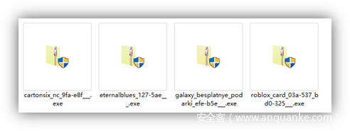 病毒家族自被发现以来,均将自身图标伪装成压缩包文档,如下所示,在XP之后的系统上,应用图标上会有一个管理员运行标志。