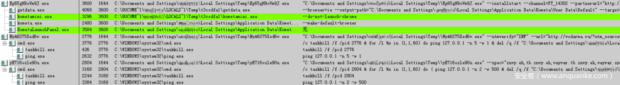 “Bigben”在获取云控信息后,下载指定的恶意推广包,然后静默安装,同时会复制出多个自身,通过携带不同的参数,分别进行IE主页锁定,篡改默认浏览器设置等,执行完毕之后,会执行自删除,如下所示。