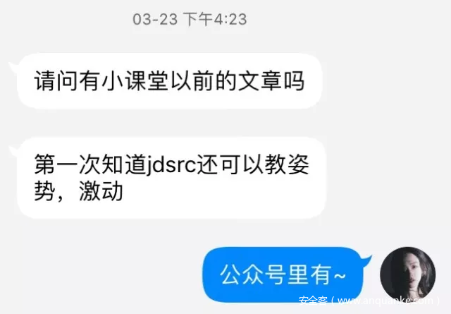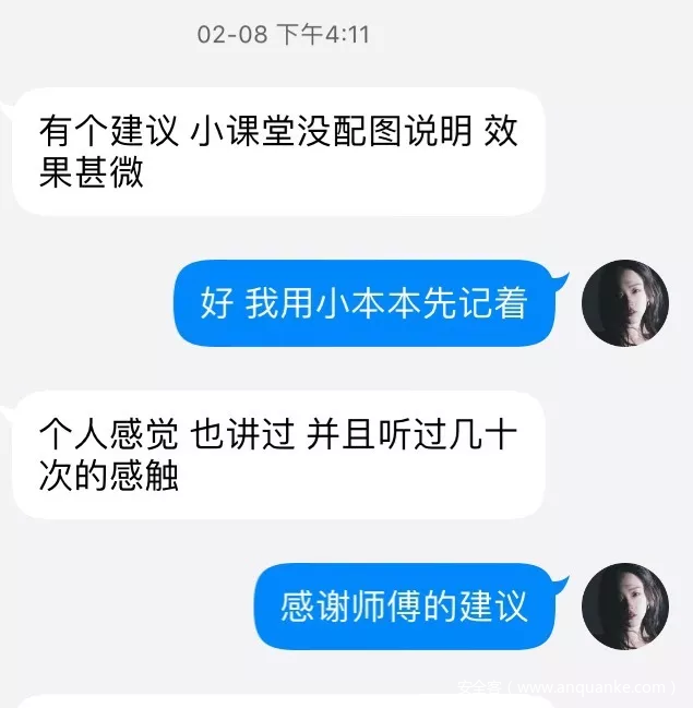 最喜欢京东安全小课堂的“白帽之路系列”,不仅励志,还给了很多安全初学者很多信念,让许多小白少走了很多弯路。小课堂连接了很多白帽子,促进了安全行业发展,祝京东安全小课堂越办越好,京东安全越来越牛。——资深白帽土夫子