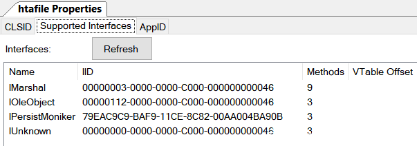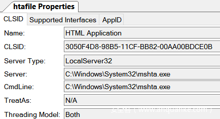 我们通过使用James Forshaw 开发的一款名为 OleViewDotNet的工具,得到关于htafile的详细信息。这个COM对象以本地服务器的权限运行。
