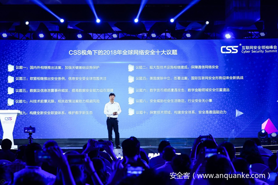 会上,腾讯安全联合实验室负责人吴宇重磅发布《CSS视角下的2018年全球网络安全十大议题》,不仅涵盖关键基础设施安全,数字金融安全,以及前沿科技安全等内容,更有全球互联网安全相关法案、法规的深度解读。