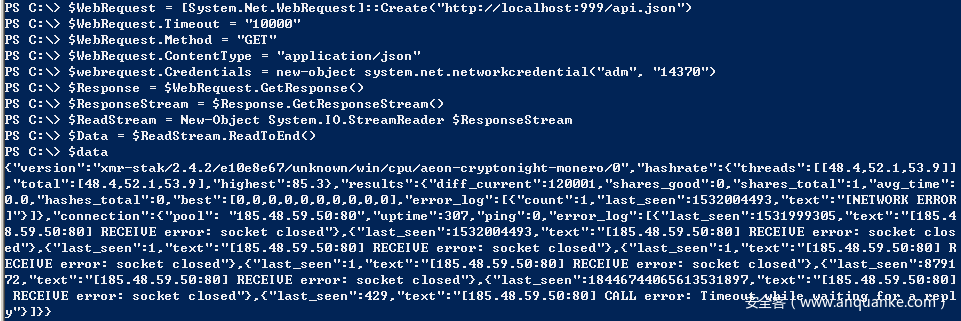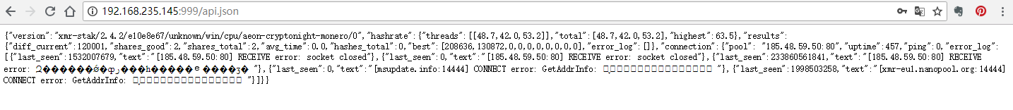 从第23个步骤开始进入explorer挖矿分支,矿机会监听999端口,通过本地访问可以获得矿机状态信息。