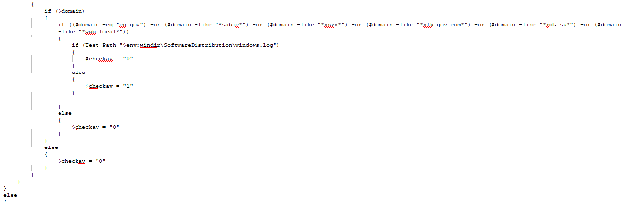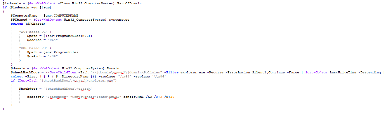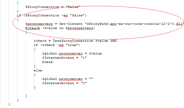 若无法连接互联网,若为域则从域后门复制dll到$env:windirFontsarial,若域为*mi3g*,则连接代理端口192.168.10.99:14445,若能连接C2则设定该代理IP为代理服务器。若存在文件api-ms-win-core-console-l2-2-0.dll,其内容为代理服务器列表。