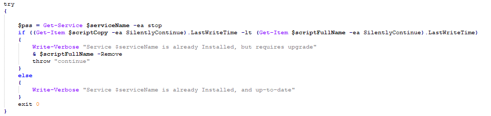 2、比较安装目录与执行目录脚本时间差,判断是否更新服务