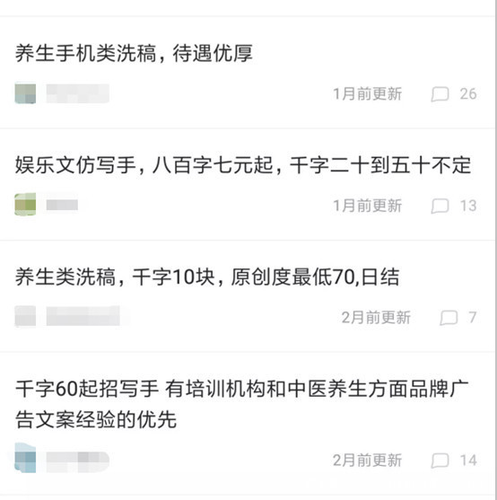 准备好了文章来源后,大数据造假上场。各大自媒体进行内容输出之外,还有很多医药公司会请写手,门槛并不高。在各平台搜索“养生文章征稿“可以发现不少“养生科普类”征稿的群组。