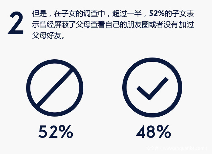 根据腾讯《朋友圈年度亲情白皮书》报告显示,52%的子女屏蔽父母朋友圈。