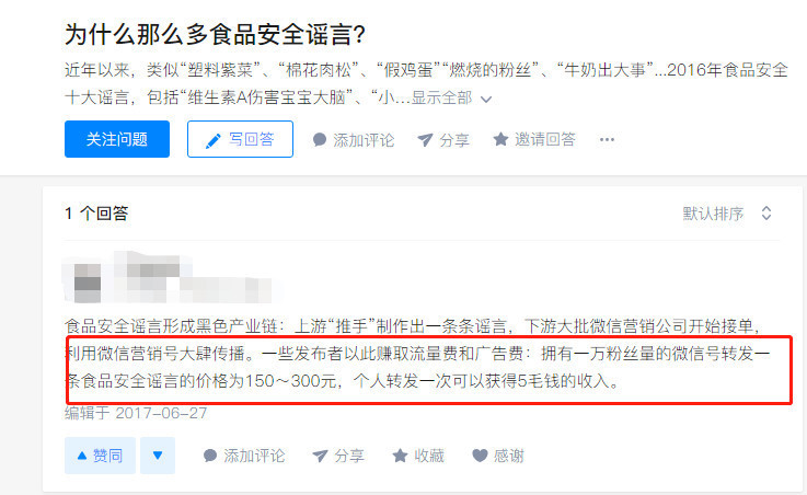 还有就是流量变现,通过转发或者将导流其他平台来获取收益,拥有一万粉丝量的微信号转发一条食品安全谣言的价格为150~300元,个人转发一次可以获得5毛钱的收入。更有甚者导流平台是赌博网站或者涉黄平台,与健康养生完全无关。