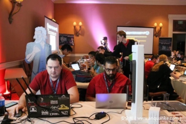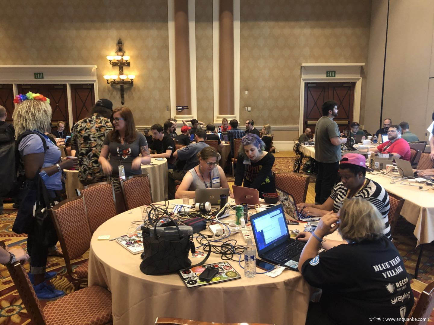 各个分会场都有CTF,即capture the flag,夺旗。作为DEFCON的核心竞赛项目,黑客们长时间奋斗在电脑前,进行分组对战,获取网络根服务,击败对手将其拉下马。在实力与技术的较量中,让黑客大会更添一分挑战的乐趣。