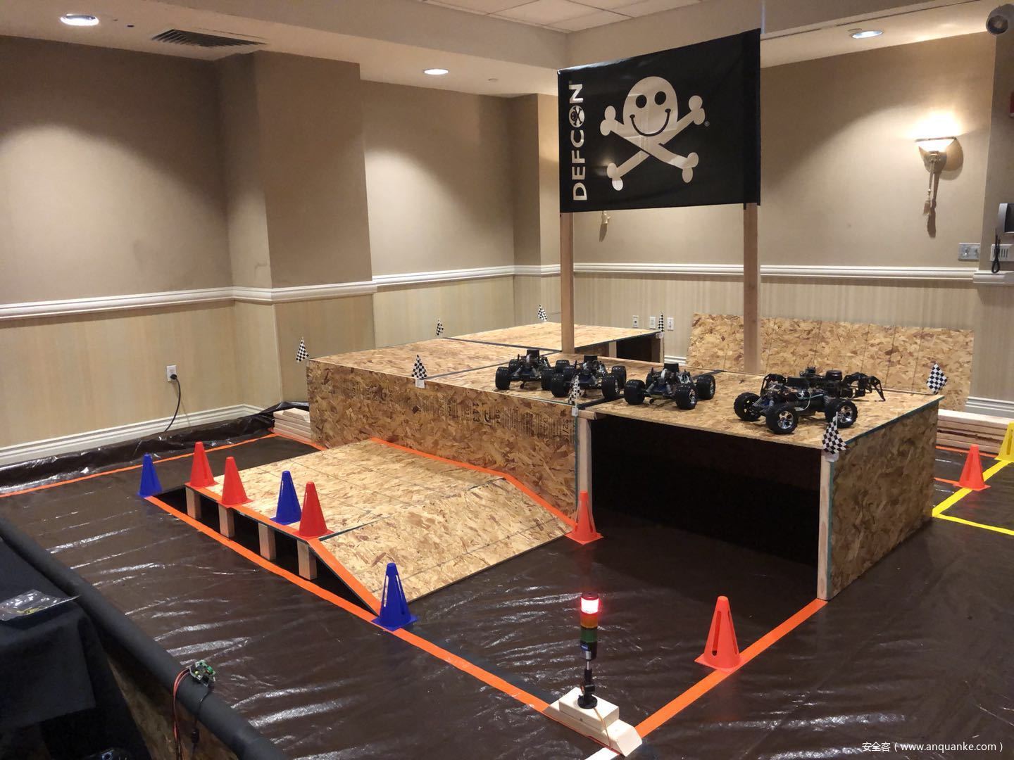 会议期间的活动丰富多彩,吸引不少黑客朋友来比试一番。比如这个在Car Hacking Village的活动:DIY的自动驾驶汽车,小车上装有雷达,摄像头,陀螺仪等传感器,看黑客能否控制小车的自动驾驶,发现相关的安全问题。