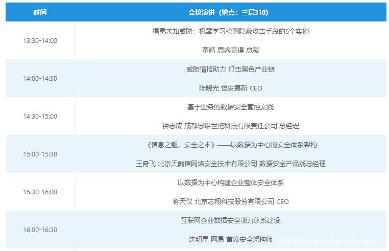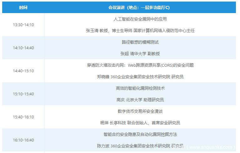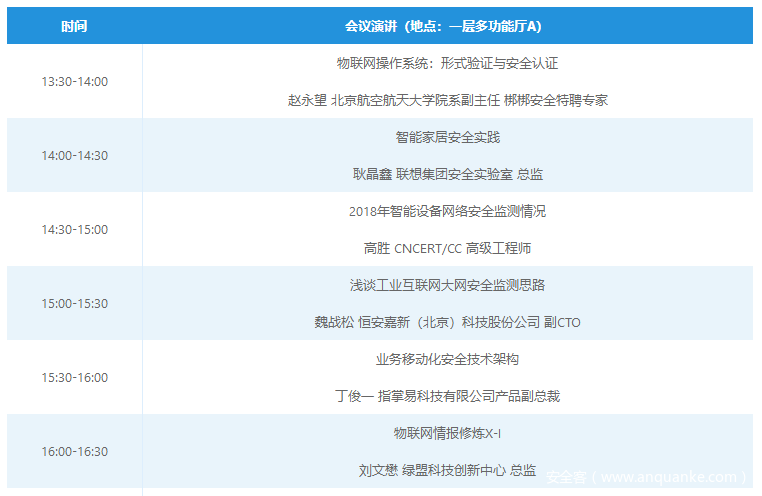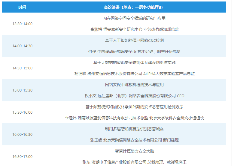 | 下午 | 物联网安全分论坛 | 人工智能与安全分论坛 | 安全漏洞分论坛