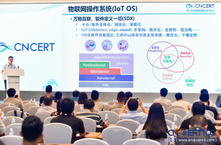 物联网是今年一个比较流行的词,陈运清教授的技术干货分享结束后,中国移动通信信息安全管理与运行中心总经理张滨带来了他的议题:物联网安全风险和应对。万物互联时代已经来临,截止2018年4月,IoT网络已在346个城市开通,物联网在全球呈快速发展趋势,我国在十三五规划中明确提出物联网国家战略,同时他表示物联网安全问题无处不在、安全事件频发,物联网业务碎片化问题也十分严重。最后他从两方面、“里面”完善制度,“外面”强化标准,提出了企业制度与规范以及国家国家标准的具体细节。