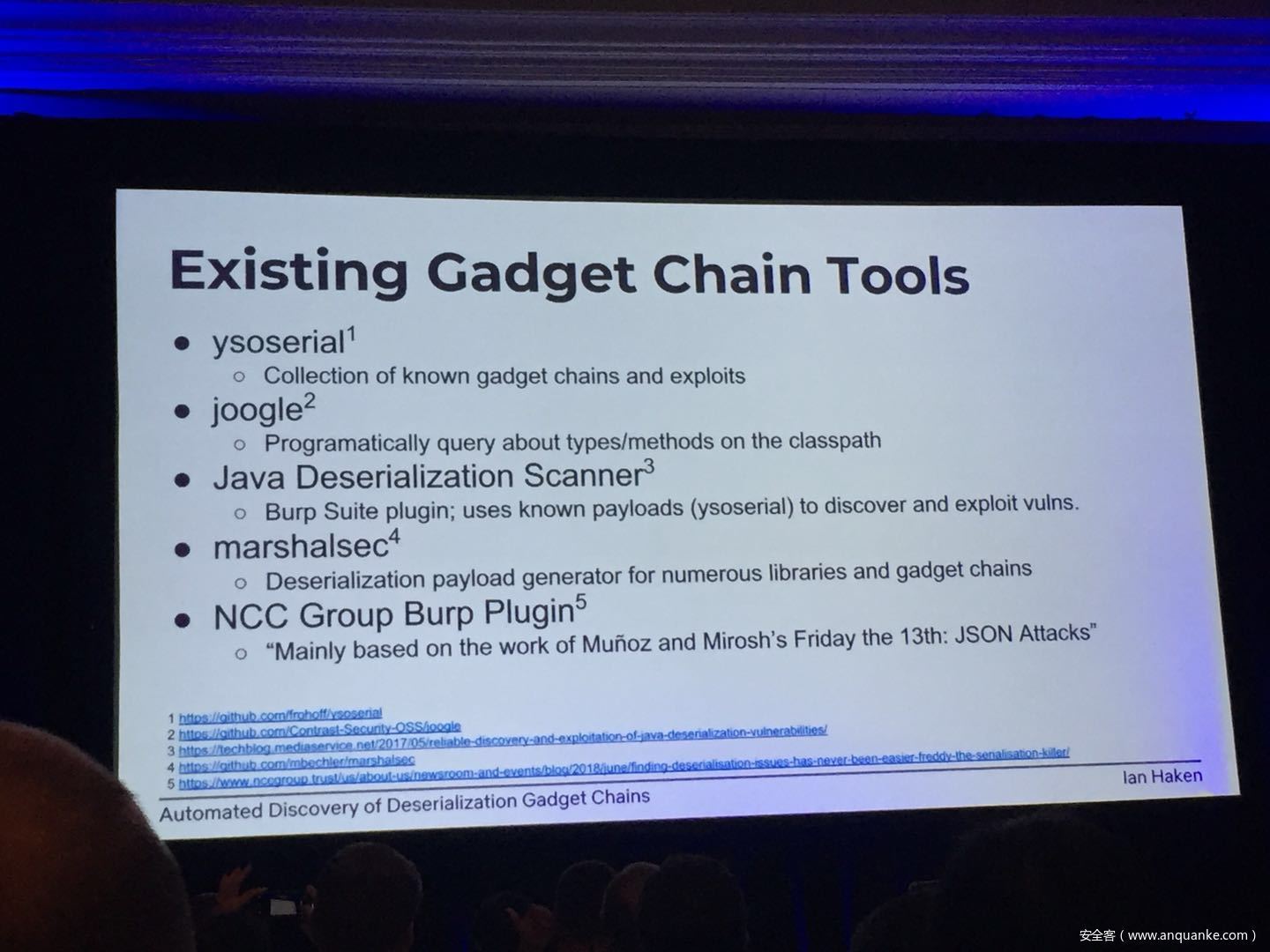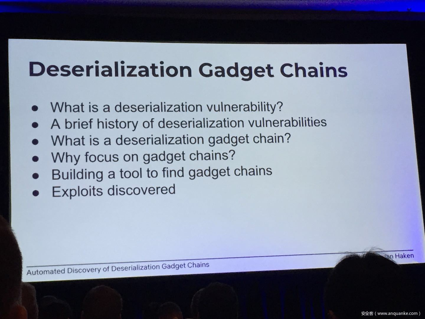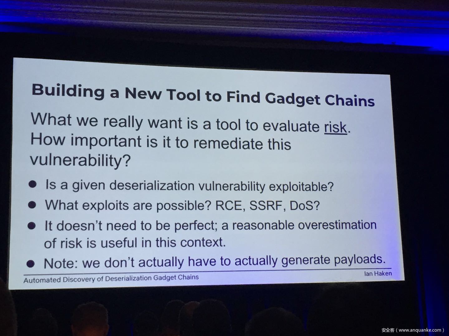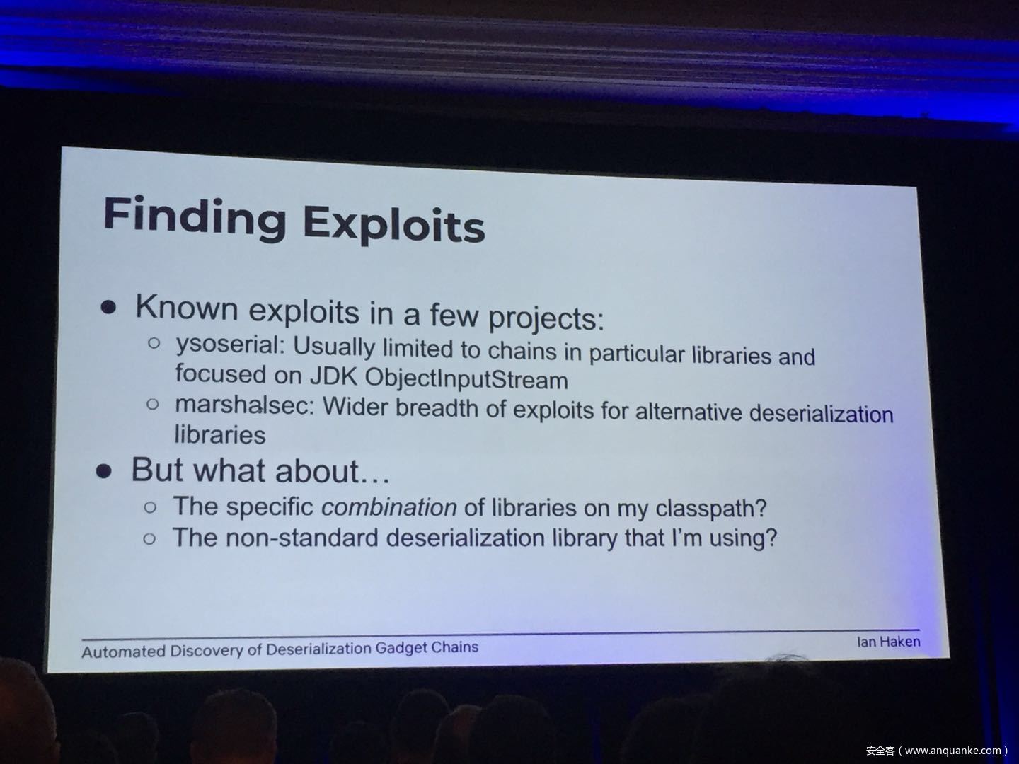 Although vulnerabilities stemming from the deserialization of untrusted data have been understood for many years, unsafe deserialization continues to be a vulnerability class that isn’t going away. Attention on Java deserialization vulnerabilities skyrocketed in 2015 when Frohoff and Lawrence published an RCE gadget chain in the Apache Commons library and as recently as last year’s Black Hat, Muñoz and Miroshis presented a survey of dangerous JSON deserialization libraries. While much research and automated detection technology has so far focused on the discovery of vulnerable entry points (i.e. code that deserializes untrusted data), finding a “gadget chain” to actually make the vulnerability exploitable has thus far been a largely manual exercise. In this talk, I present a new technique for the automated discovery of deserialization gadget chains in Java, allowing defensive teams to quickly identify the significance of a deserialization vulnerability and allowing penetration testers to quickly develop working exploits. At the conclusion, I will also be releasing a FOSS toolkit which utilizes this methodology and has been used to successfully develop many deserialization exploits in both internal applications and open source projects.