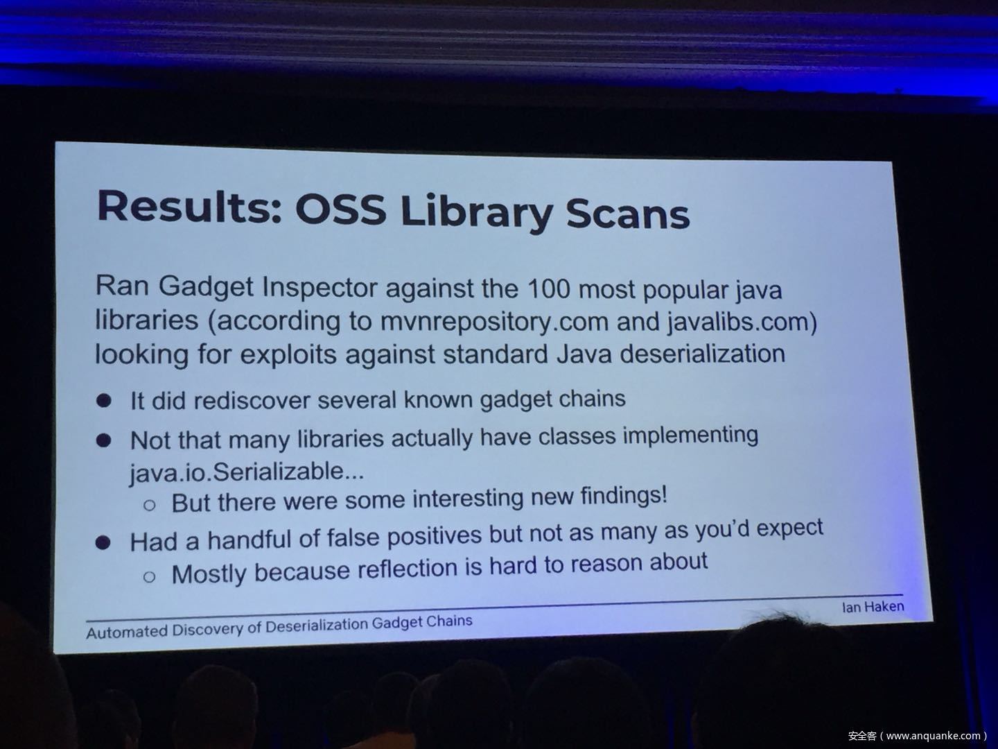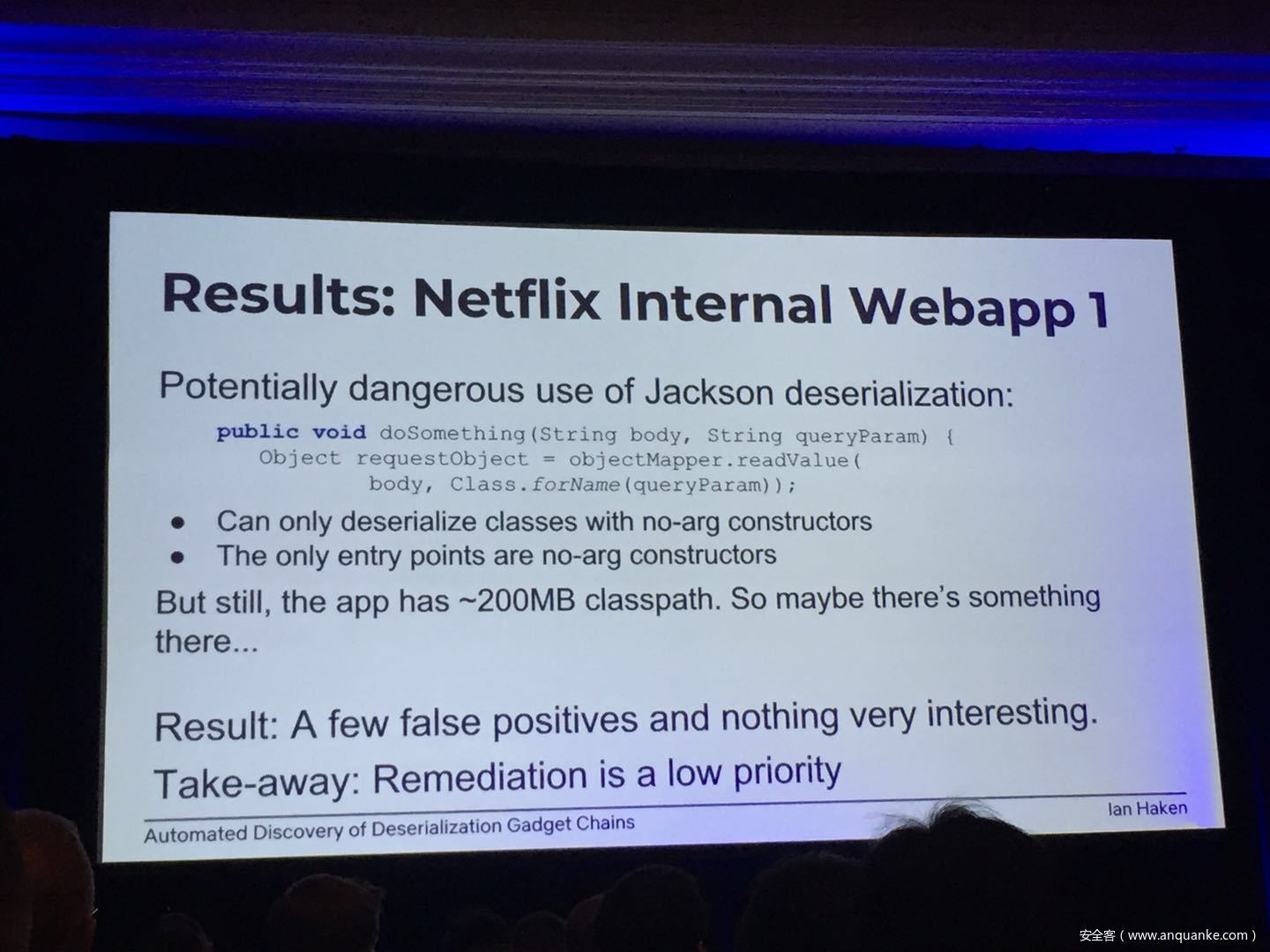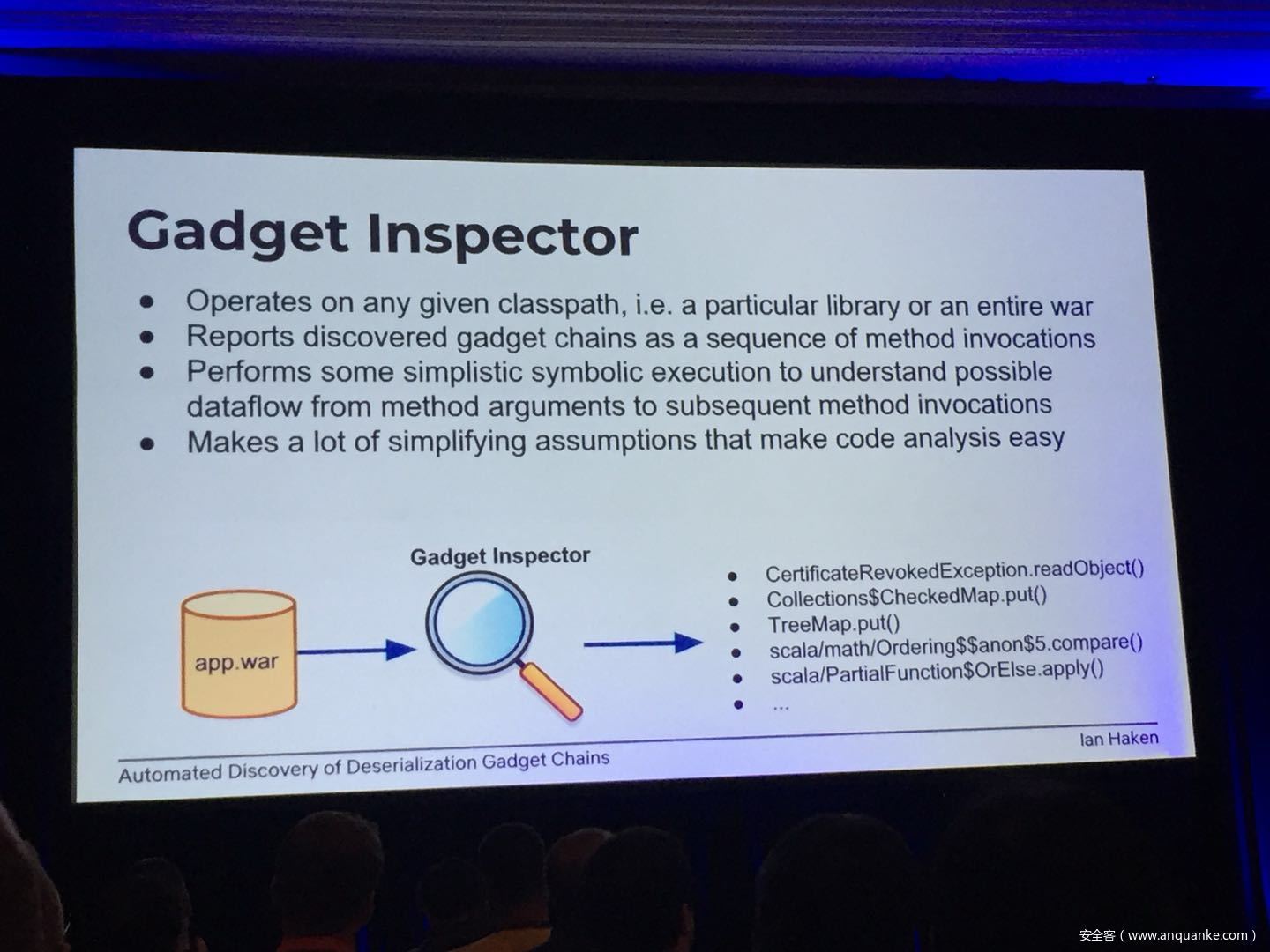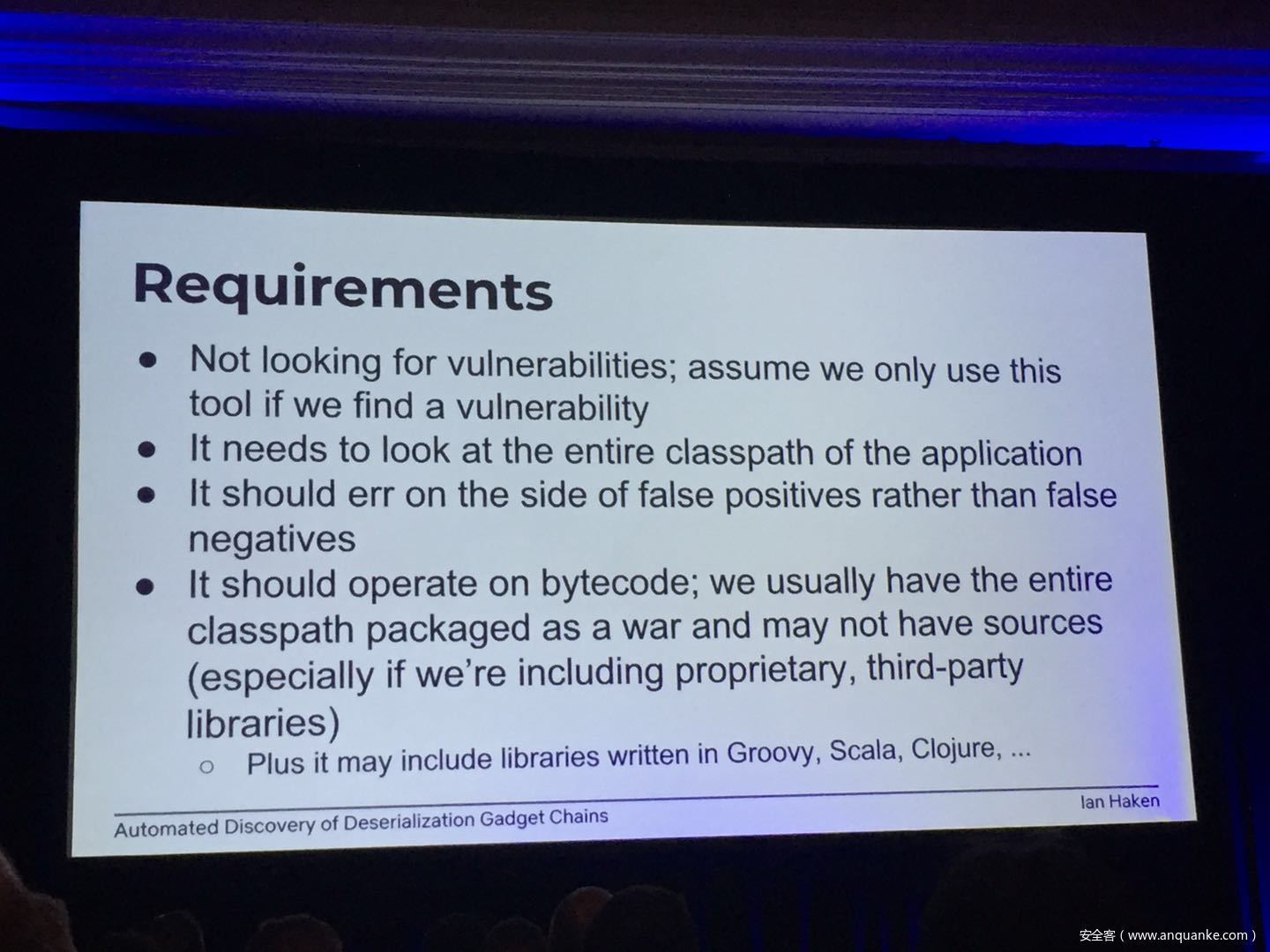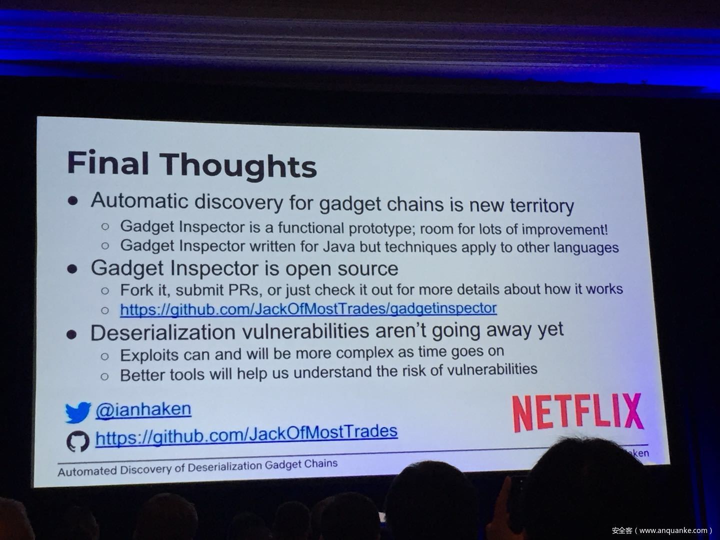 Although vulnerabilities stemming from the deserialization of untrusted data have been understood for many years, unsafe deserialization continues to be a vulnerability class that isn’t going away. Attention on Java deserialization vulnerabilities skyrocketed in 2015 when Frohoff and Lawrence published an RCE gadget chain in the Apache Commons library and as recently as last year’s Black Hat, Muñoz and Miroshis presented a survey of dangerous JSON deserialization libraries. While much research and automated detection technology has so far focused on the discovery of vulnerable entry points (i.e. code that deserializes untrusted data), finding a “gadget chain” to actually make the vulnerability exploitable has thus far been a largely manual exercise. In this talk, I present a new technique for the automated discovery of deserialization gadget chains in Java, allowing defensive teams to quickly identify the significance of a deserialization vulnerability and allowing penetration testers to quickly develop working exploits. At the conclusion, I will also be releasing a FOSS toolkit which utilizes this methodology and has been used to successfully develop many deserialization exploits in both internal applications and open source projects.