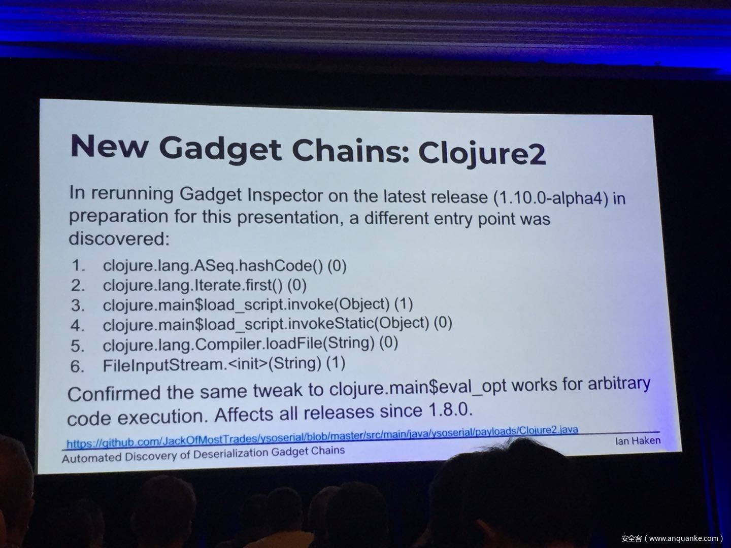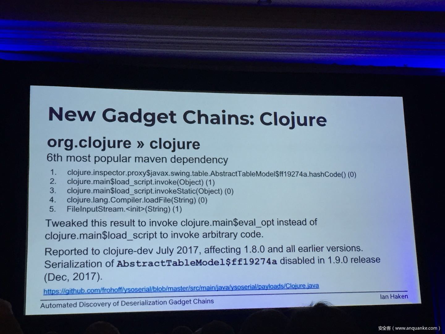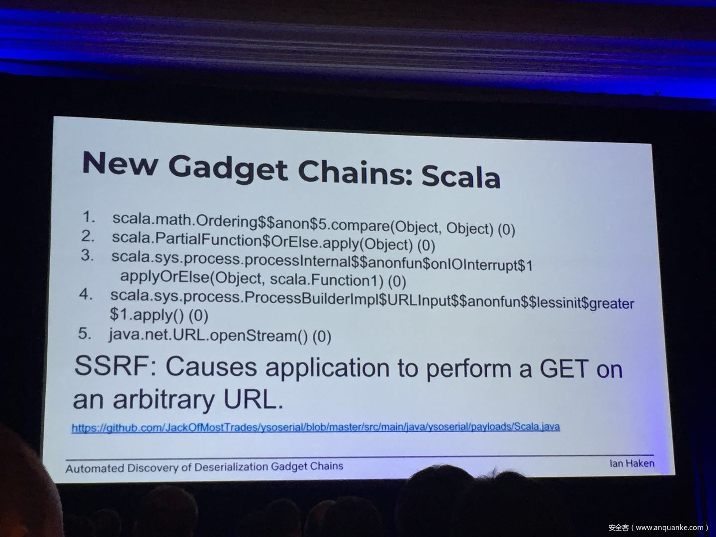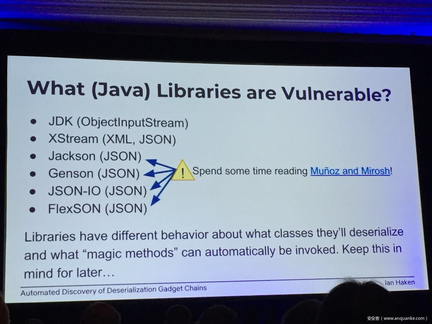 Although vulnerabilities stemming from the deserialization of untrusted data have been understood for many years, unsafe deserialization continues to be a vulnerability class that isn’t going away. Attention on Java deserialization vulnerabilities skyrocketed in 2015 when Frohoff and Lawrence published an RCE gadget chain in the Apache Commons library and as recently as last year’s Black Hat, Muñoz and Miroshis presented a survey of dangerous JSON deserialization libraries. While much research and automated detection technology has so far focused on the discovery of vulnerable entry points (i.e. code that deserializes untrusted data), finding a “gadget chain” to actually make the vulnerability exploitable has thus far been a largely manual exercise. In this talk, I present a new technique for the automated discovery of deserialization gadget chains in Java, allowing defensive teams to quickly identify the significance of a deserialization vulnerability and allowing penetration testers to quickly develop working exploits. At the conclusion, I will also be releasing a FOSS toolkit which utilizes this methodology and has been used to successfully develop many deserialization exploits in both internal applications and open source projects.