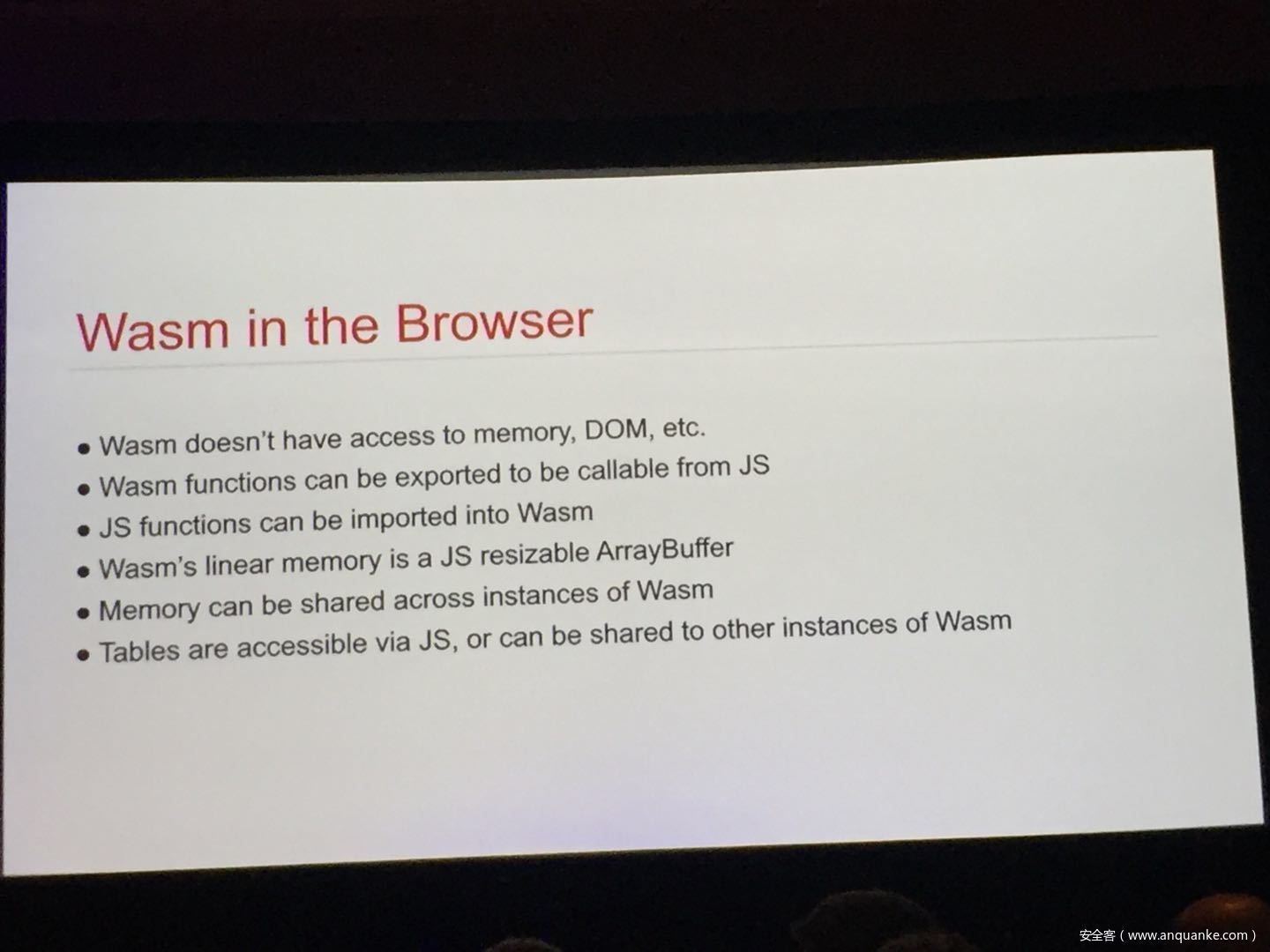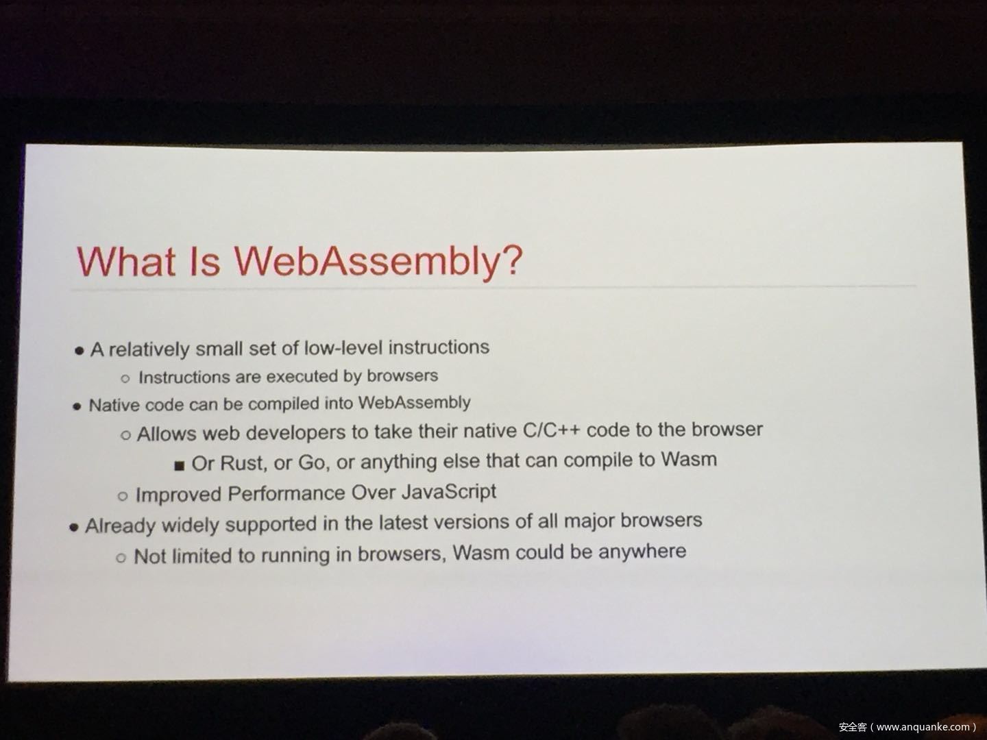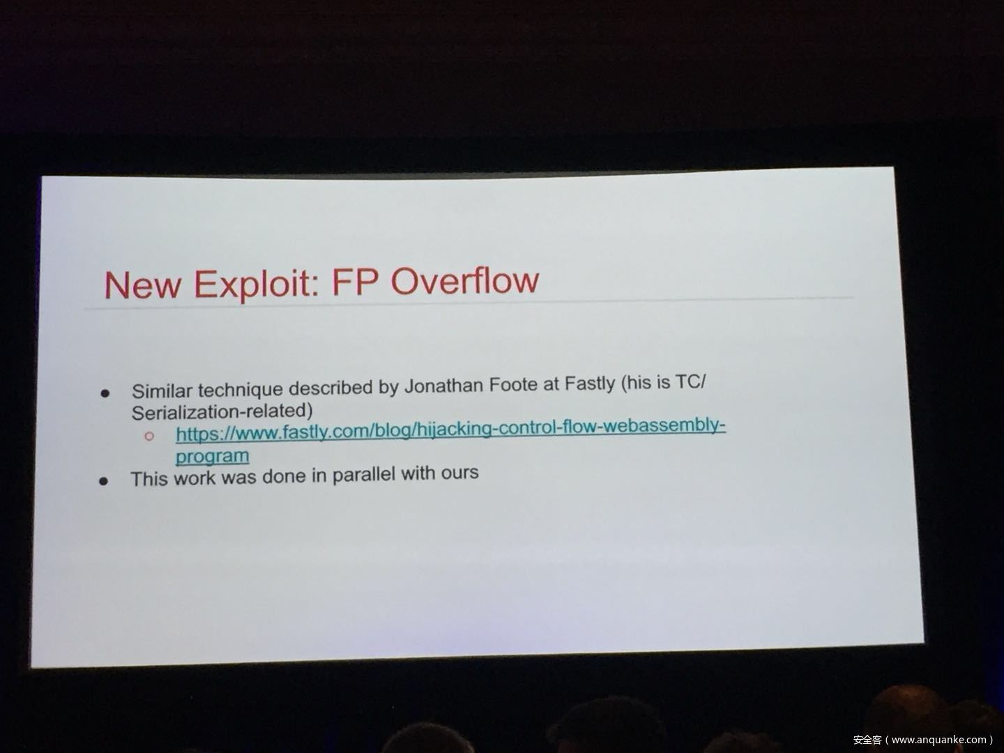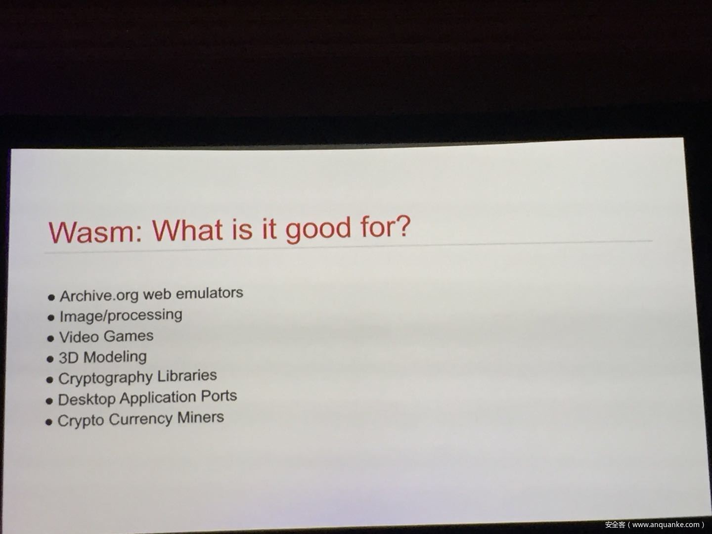 WebAssembly (WASM) is a new technology being developed by the major browser vendors through the W3C. A direct descendent of NaCl and Asm.js, the idea is to allow web developers to run native (e.g. C/C++) code in a web page at near-native performance. WASM is already widely supported in the latest versions of all major browsers, and new use case examples are constantly popping up in the wild. Notable examples include 3D model rendering, interface design, visual data processing, and video games. Beyond providing significant performance benefits to developers, WebAssembly is also touted as being exceptionally secure. Developers claim that buffer overflows will be an impossibility, as any attempted access to out-of-bounds memory will be caught by a Javascript error. Their documentation claims that control flow integrity is enforced implicitly and that “common mitigations such as data execution prevention (DEP) and stack smashing protection (SSP) are not needed by WebAssembly programs.” However, the documentation also outlines several possible vectors of attacks, including race conditions, code reuse attacks, and side channel attacks.