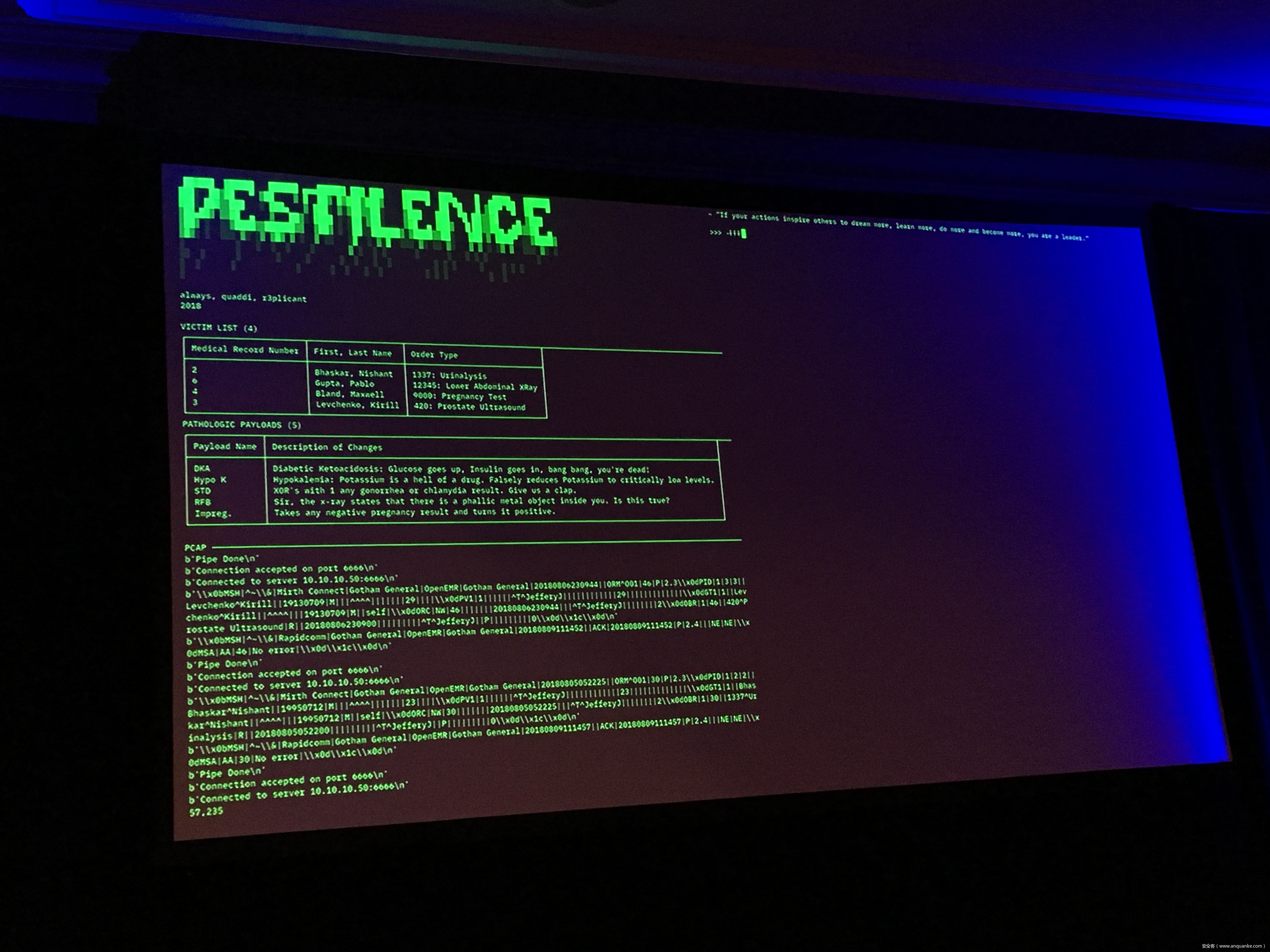 The HL7 standards comprises the backbone of clinical data transfer used in every hospital around the globe. Frequently implemented as plain text messages sent across flat networks with no authentication or verification, HL7 is both critically ubiquitous and massively unsecured- and thus every lab sample, every medical image, every doctor’s order becomes a potential time bomb.