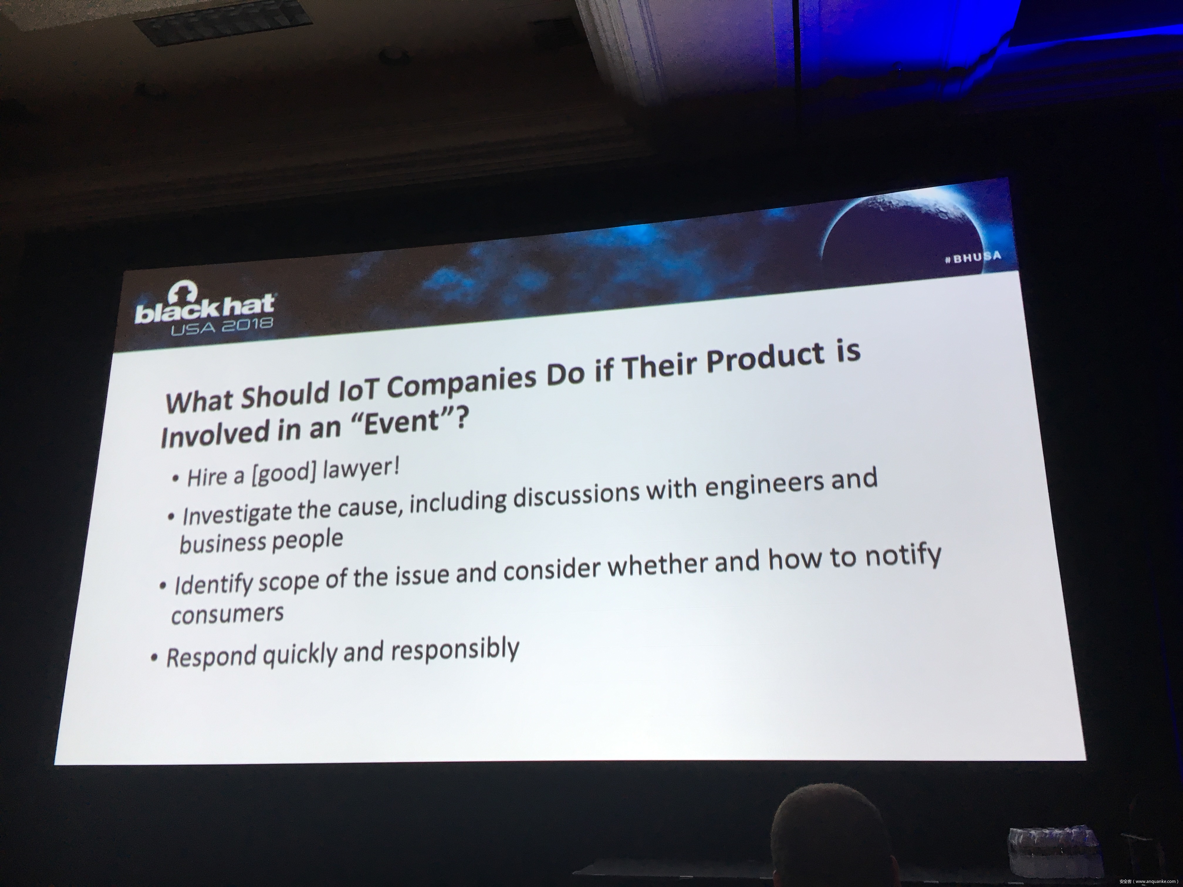 This case is the tip of the iceberg. IOT products are ubiquitous, and in general their cybersecurity is feeble, at best. In the event of a cyberphysical IoT hack that causes injury, there are established legal doctrines that can be used to impose liability every company involved in the design, manufacturing, and distribution of an exploited IoT device or even its cyber-related components. Such liability could be crippling, if not fatal, for organizations that don’t know how to properly handle and prepare for potential lawsuits.