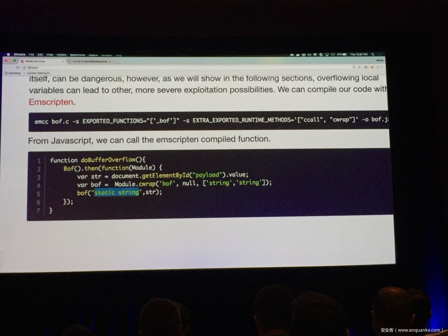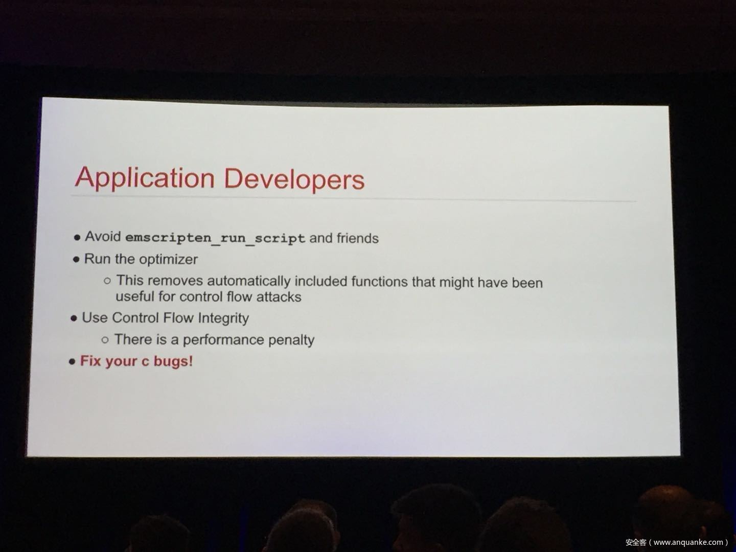 The goal of this talk is to provide a basic introduction to WebAssembly and examine the actual security risks that a developer may take on by using it. We will cover the low-level semantics of WebAssembly, including the Javascript API, the linear memory model, and the use of tables as function pointers. We will cover several examples demonstrating the theoretical security implications of WASM, such as linear memory being shared between modules and the passing of a Javascript ‘Number’ to a WASM function that expects a signed integer. We will also cover Emscripten, which is currently the most popular WebAssembly compiler toolchain. Our assessment of Emscripten will include its implementation of compiler-and-linker-level exploit mitigations as well as the internal hardening of its libc implementation, and how it’s augmentation of WASM introduces new attack vectors and methods of exploitation. As part of this we will also provide practical examples of memory corruption exploits in the WASM environment that may lead to hijacking control flow or even executing arbitrary JavaScript within the context of the web page. Finally, we will provide a basic outline of best practices and security considerations for developers wishing to integrate WebAssembly into their product.