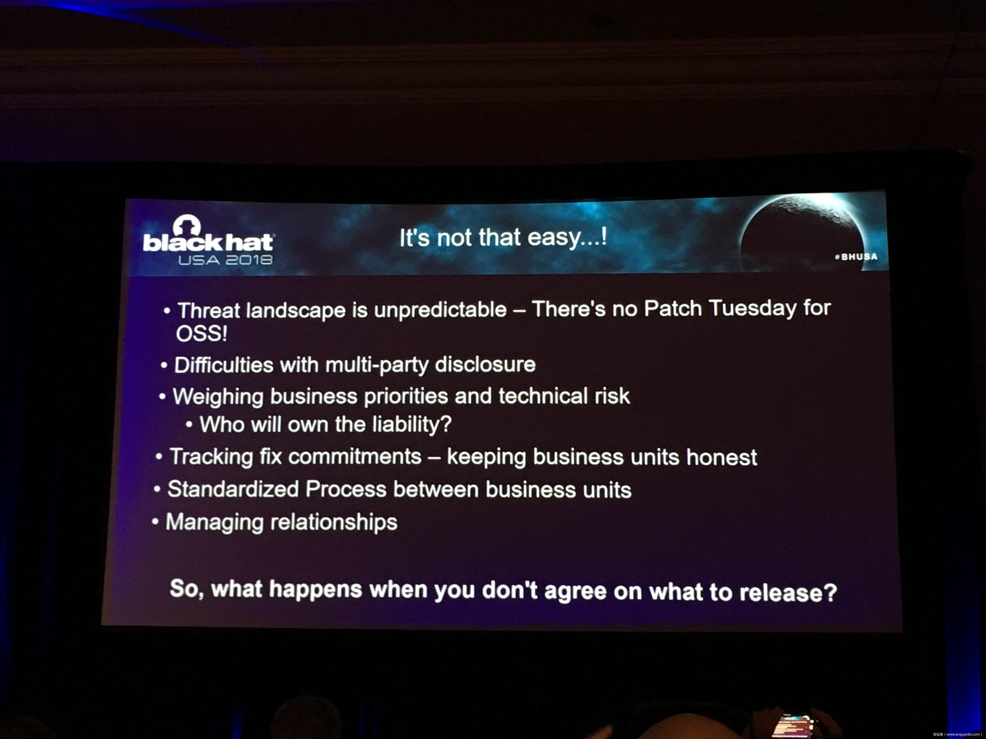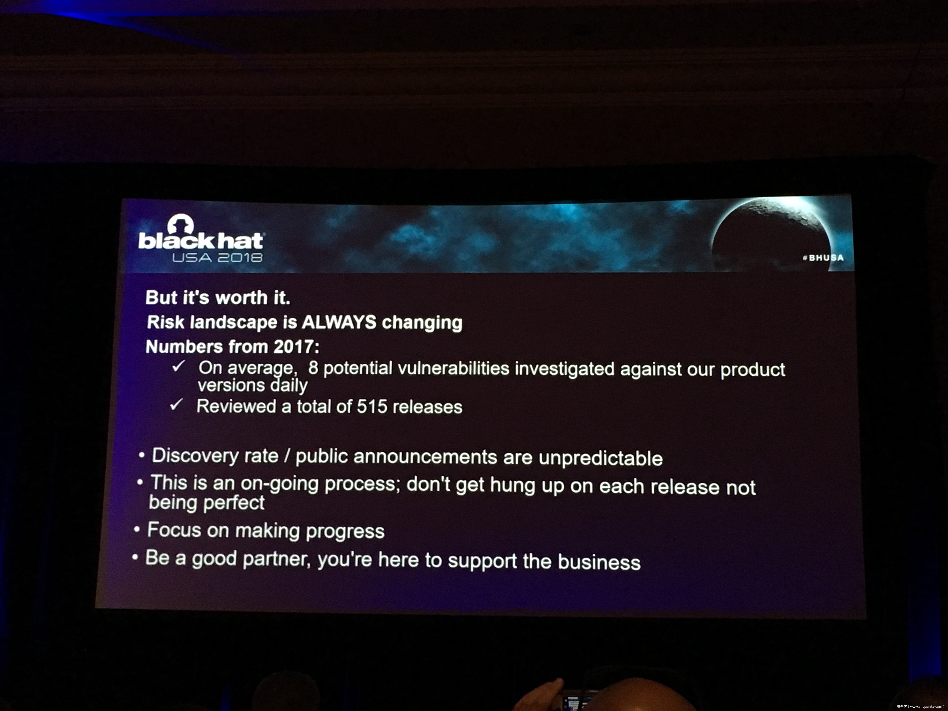 How do you prioritize publicly known vulnerabilities against internally found vulnerabilities? When do you hold a release to update that library for a critical vulnerability fix when it’s already slipped? How do you track unresolved vulnerabilities that are considered security debt? You ARE reviewing the security posture of your software releases, right?