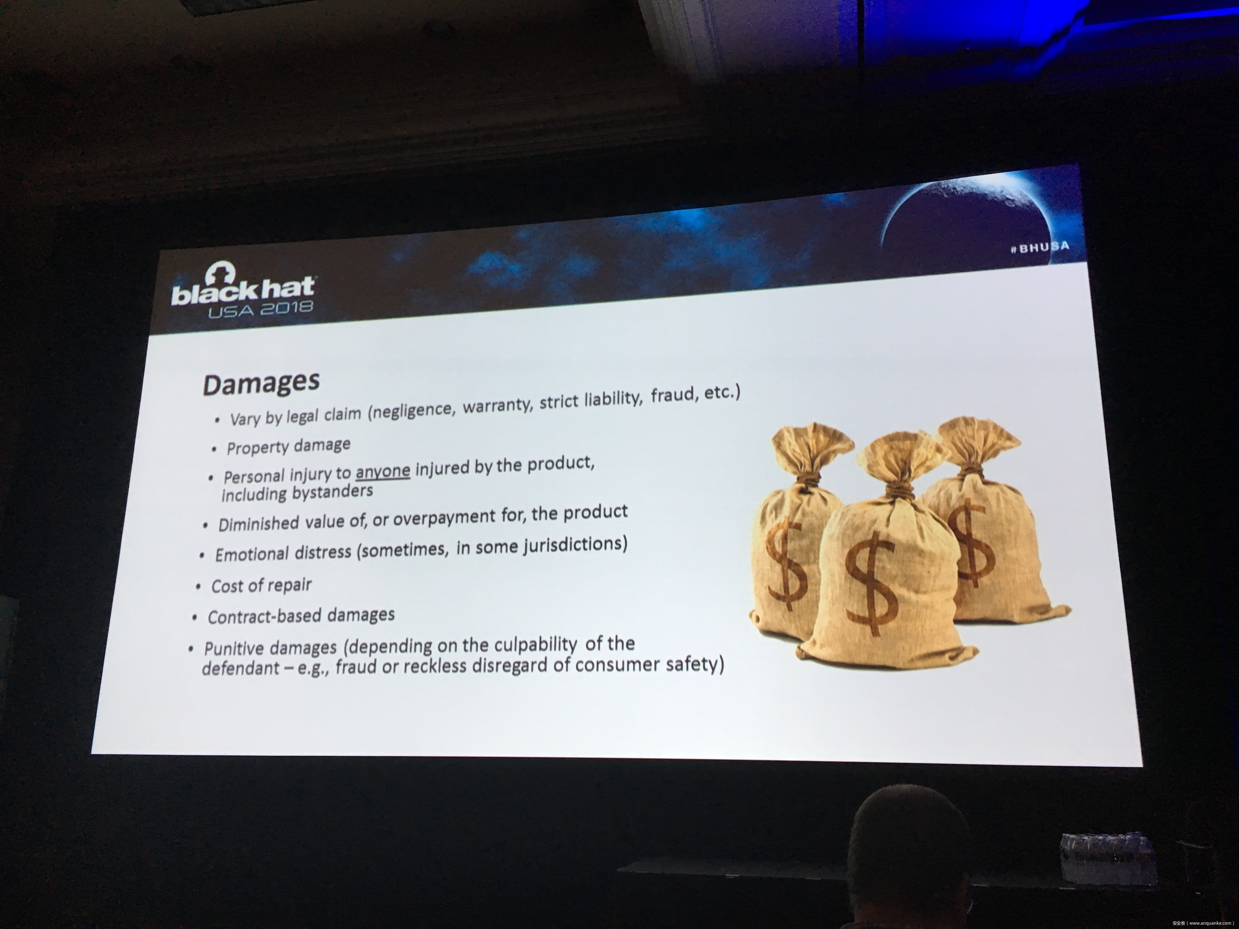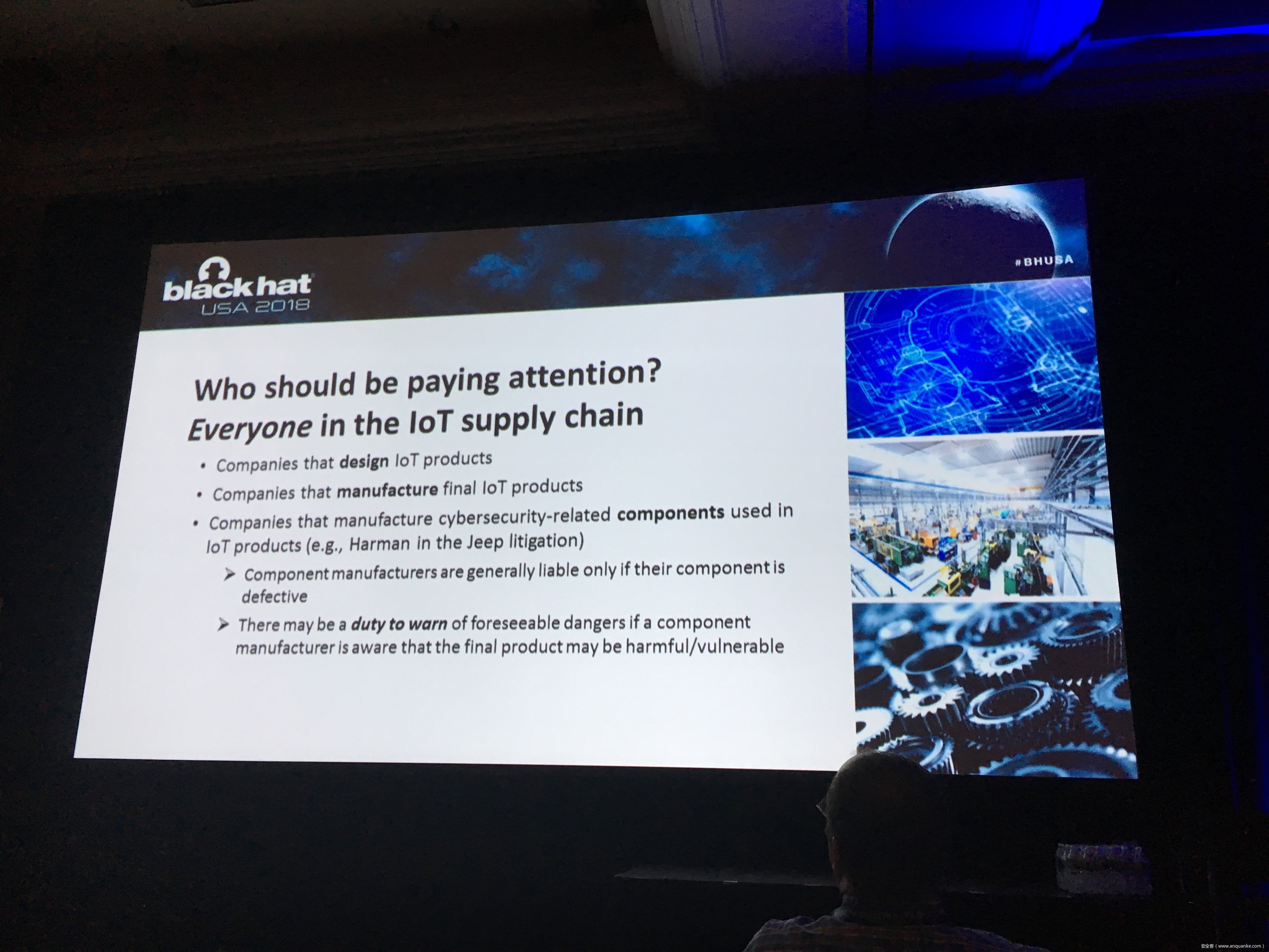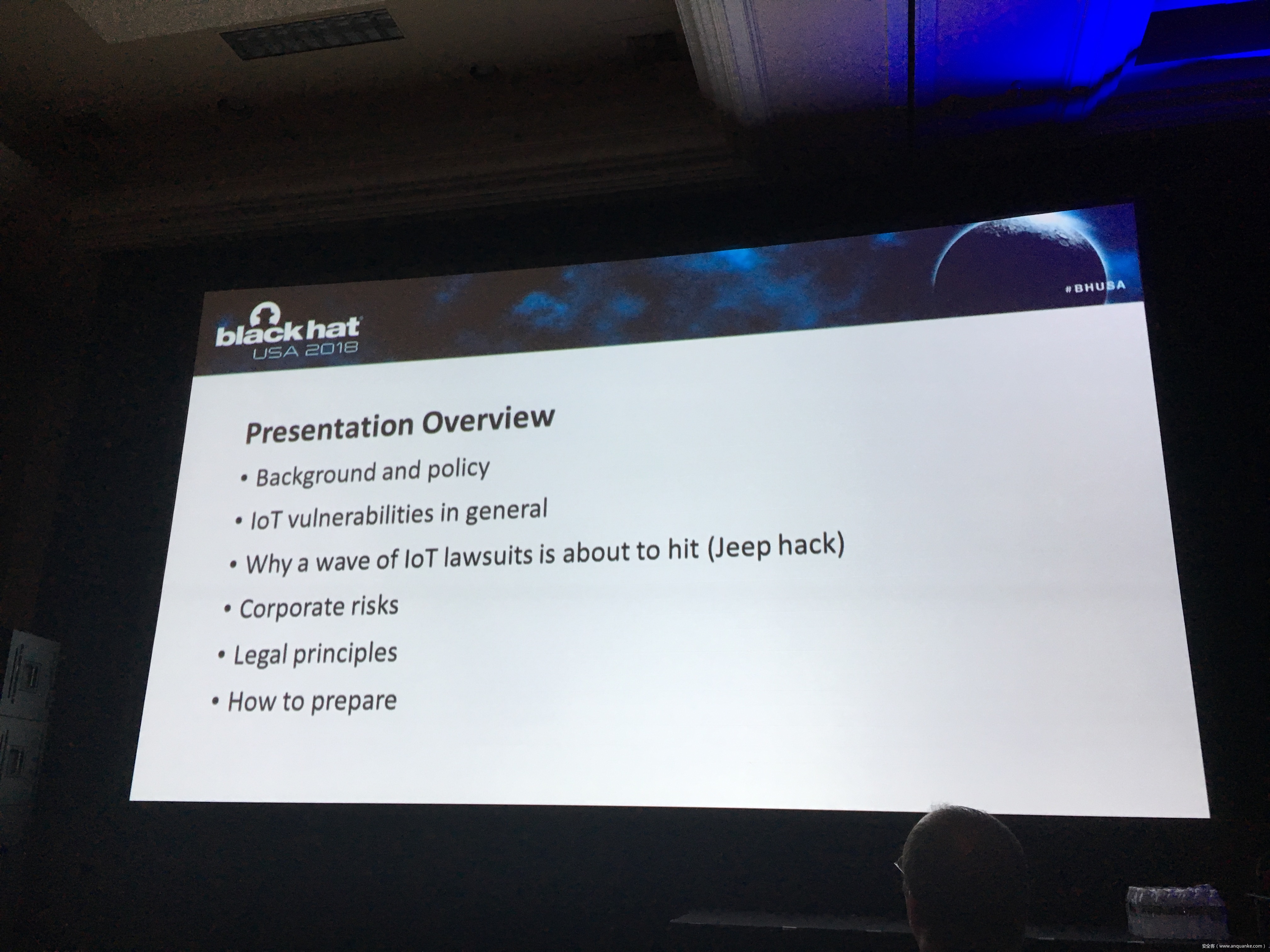 The presentation will focus on a well-known example: Charlie Miller and Chris Valasek’s 2015 Jeep hack. I’m lead counsel in the ongoing federal litigation over the cybersecurity defects Charlie and Chris exposed, and that are shared by 1.4 million Chrysler vehicles. As far as I know, our case is one of the first, and the biggest, that involves claims that consumers should be compensated for inadequate cybersecurity in IoT products.