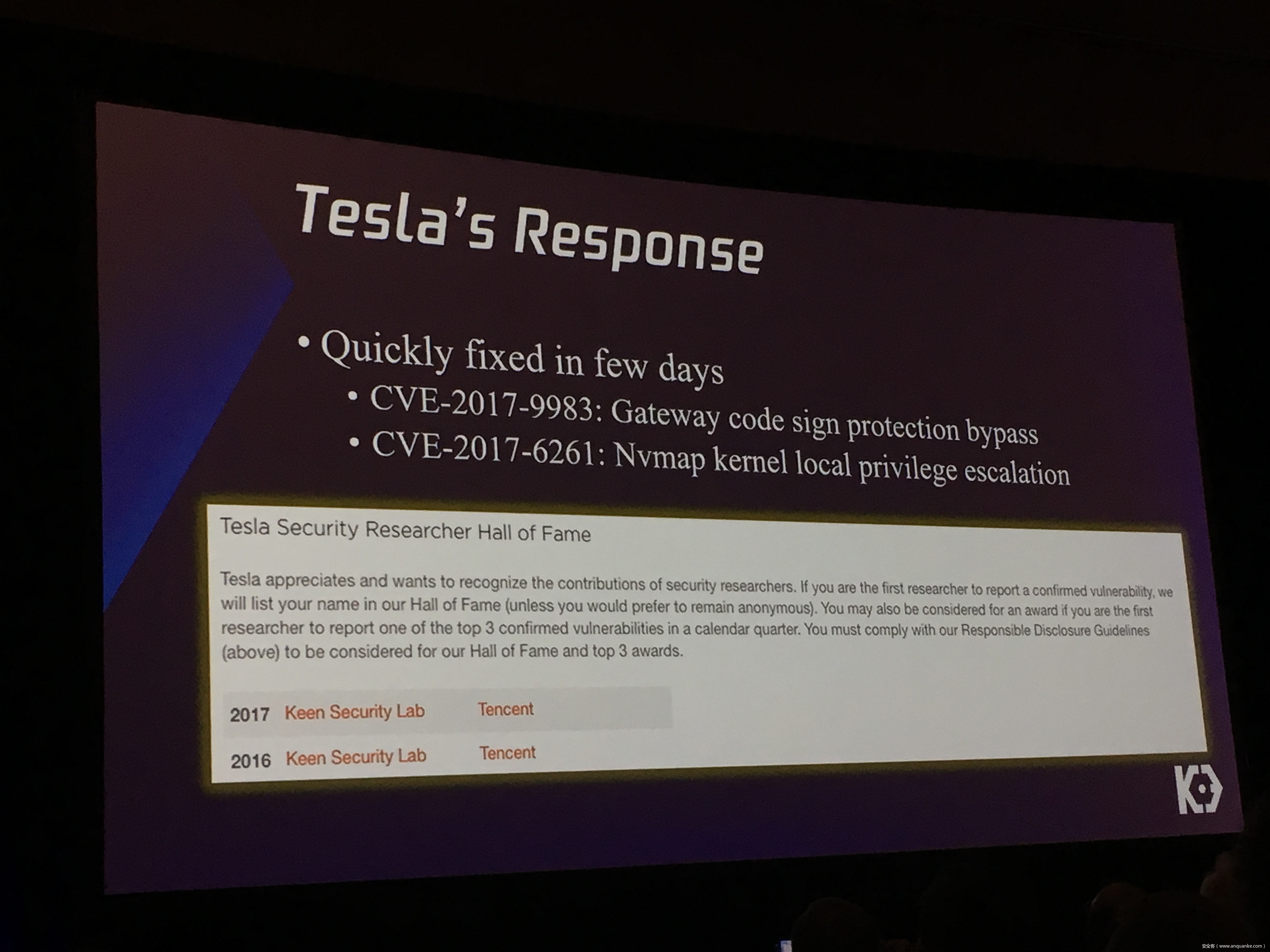 We, Keen Security Lab of Tencent, have successfully implemented two remote attacks on the Tesla Model S/X in year 2016 and 2017. Last year, at Black Hat USA, we presented the details of our first attack chain. At that time, we showed a demonstration video of our second attack chain, but without technical aspects. This year, we are willing to share our full, in-depth details on this research.