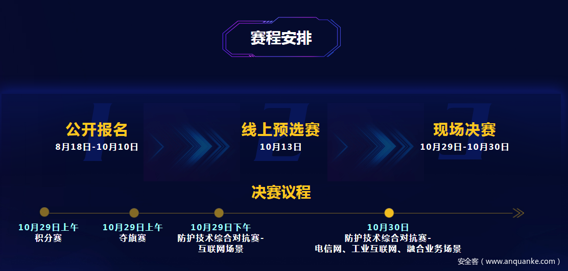 为深入贯彻习近平新时代中国特色社会主义思想和党的十九大精神,扎实落实党中央和国务院关于网络安全工作的重大决策部署,提升电信网和互联网、工业互联网等网络信息基础设施安全防护水平,挖掘培养网络安全优秀人才,有力支撑网络强国和制造强国建设,在工业和信息化部指导下,中国互联网协会、中国信息通信研究院、国家工业信息安全发展研究中心定于10月在北京联合主办“护网杯”—2018年网络安全防护赛暨首届工业互联网安全大赛。