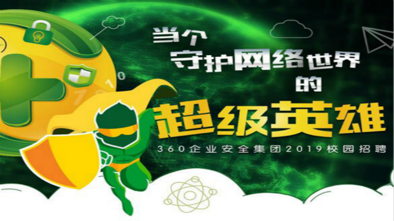 360企业安全集团2019年秋季校园招聘已经启动,现广发英雄帖,招募隐匿于五湖四海的高校的新生代技术达人。