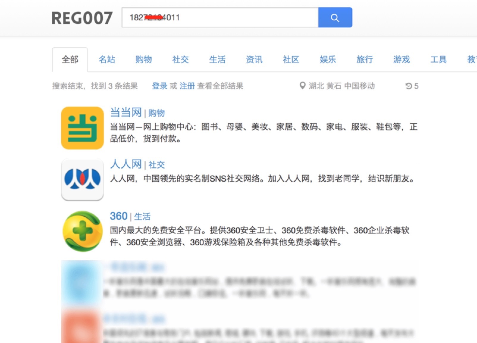 有了用户的手机号码,就可以拿着这些号码去尝试注册各种网站,只要提示已注册,那么你就是这个网站的受众,再给你打上母婴、英语这些特征标签,完成人物画像。这也是“REG007”(查找你注册过什么)这些网站的原理。