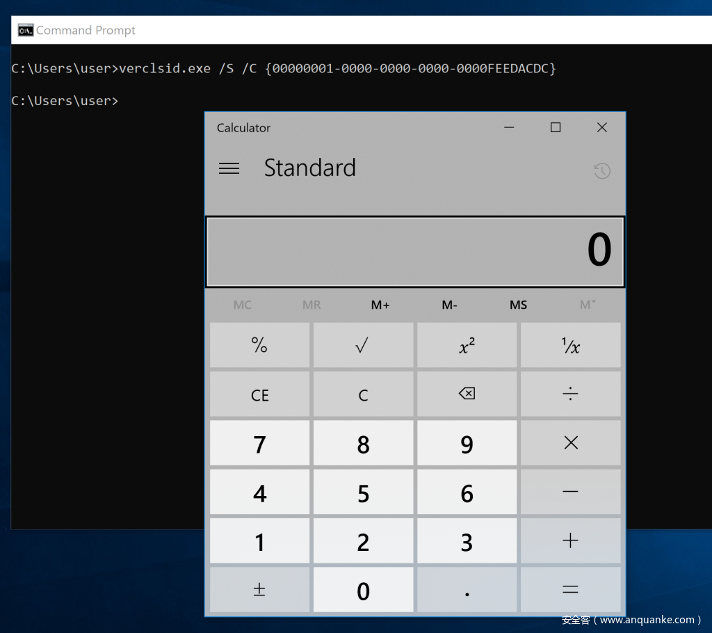 根据微软的说明文档,verclsid.exe可以“在Windows资源管理器实例化一个COM对象前验证该对象”,这一点非常有趣。Nick Tyrer(@NickTyrer)在Github上演示了Verclsid的一种用法,如下所示: