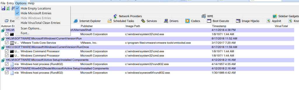 图18. MMC AutoRuns Run注册表键值:不使用过滤器的处理结果