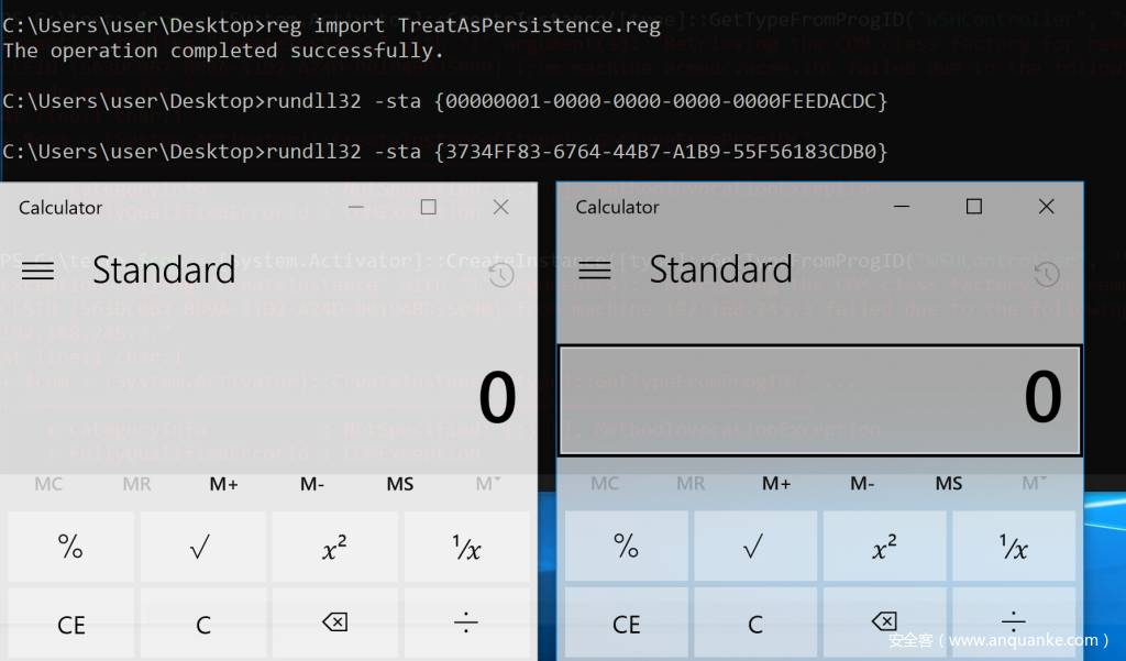 使用合适的CLSID运行上述命令后,就可以调用攻击者设定的载荷,如下所示: