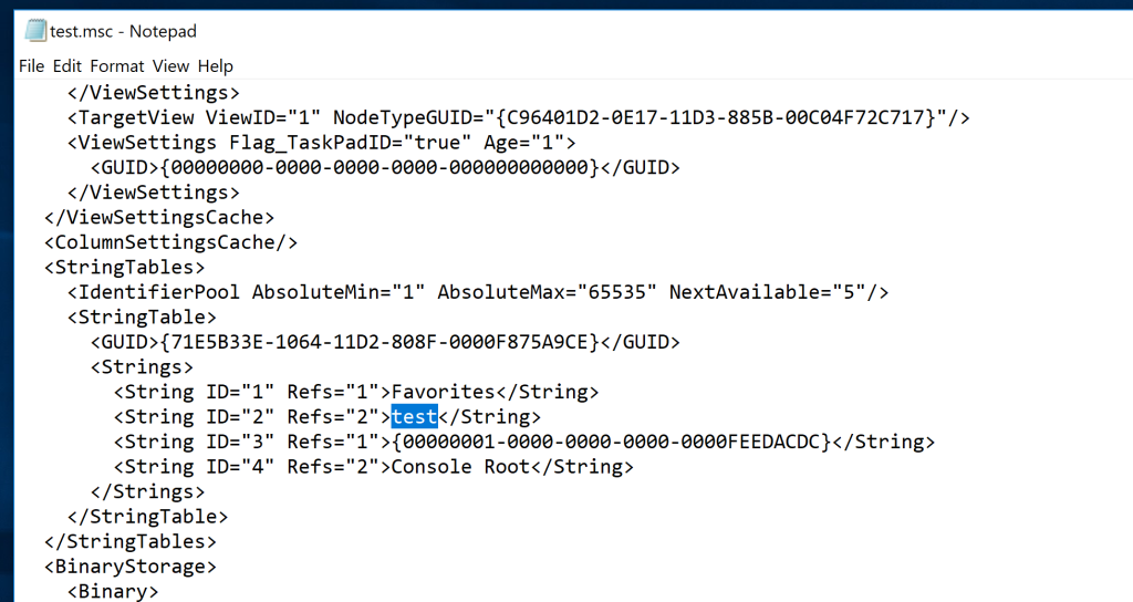 为了进一步确认这个条件,我们可以使用文本编辑器打开这个控制台文件,验证配置信息以及CLSID指针的值是否正确: