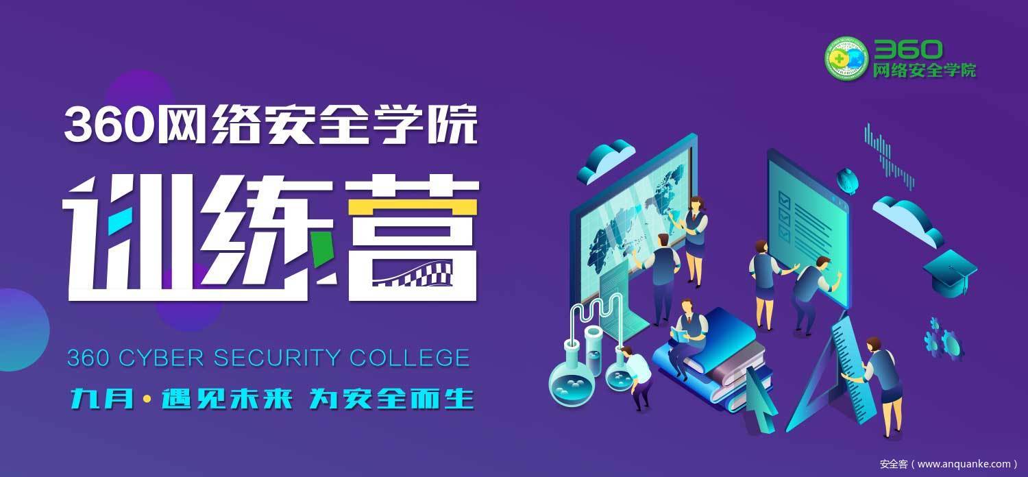 在9月,360网络安全学院“遇见未来•为安全而生”主题训练营活动将于9月22日举行。届时,将有360一线技术大咖、行业顶尖网络安全专家亲临现场为你解密网络安全那些事儿、分享行业发展趋势、展示360内部技术研发成果。
