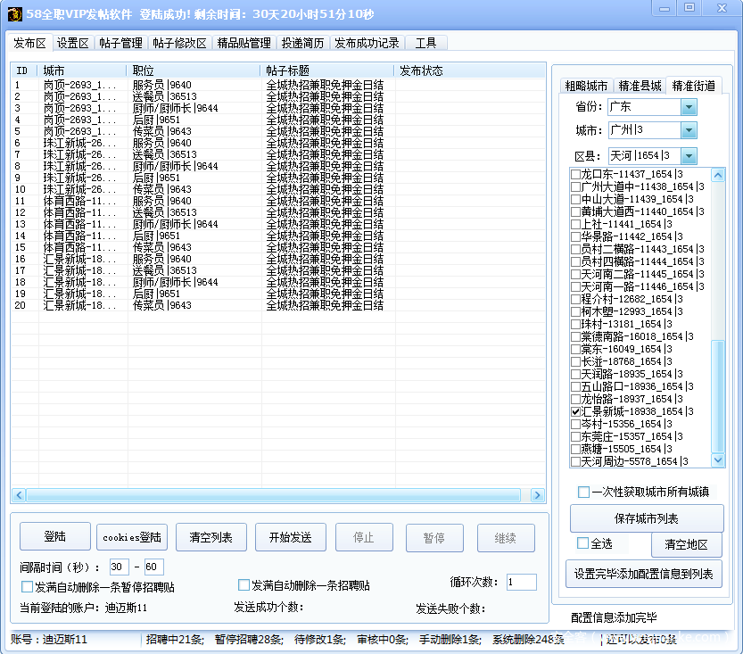 图4-3-1 58全职VIP发帖软件运行界面
