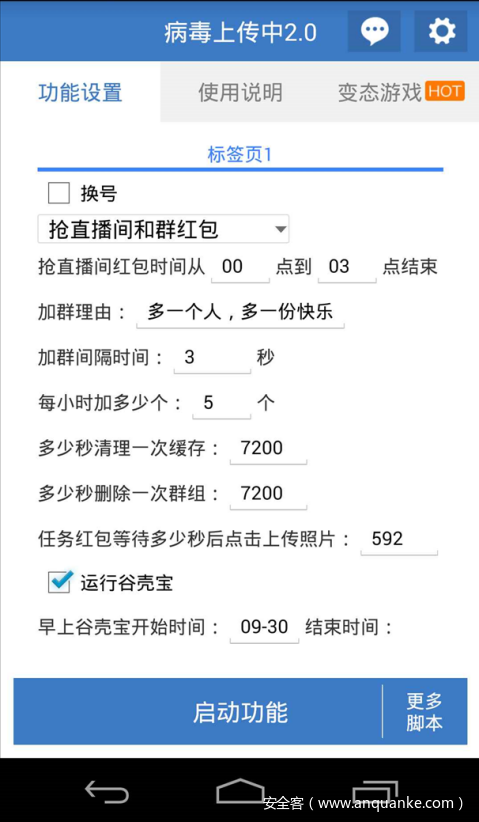 这是7月份捕获的一款针对陌陌的抢红包类工具软件,基于按键精灵安卓版实现。通过自定义录制对手机屏幕的操作及重复次数等信息,按照一定模式进行对手机进行模拟操作从而实现抢红包等功能。工具运行如下图所示: