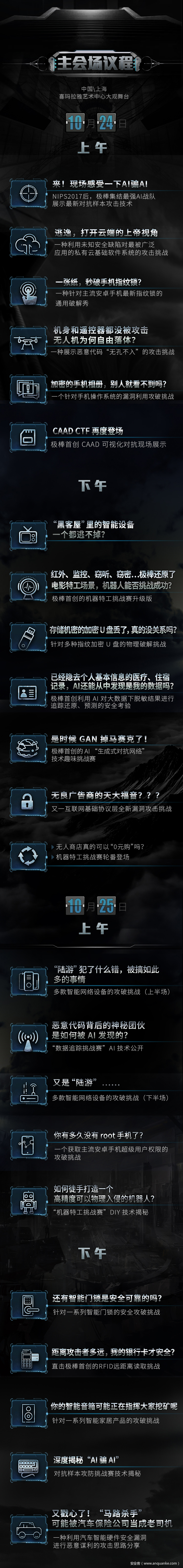 作为全球首个关注智能生活的安全极客大赛,GeekPwn始终深耕人工智能安全领域,致力于寻找AI潜藏的风险并不断帮助其完善,并协助AI进行安全性的预演分析,助力AI安全健康成长。而此次GeekPwn2018上海站上除了AI与安全的跨界新思潮、新技术,以及无所不PWN中呈现的奇特黑科技脑洞外,还有“极客套装”:帽衫、T恤、帽子、胸章、贴纸等,更会在现场设置奖品丰厚的终极抽奖活动。看了这么多亮点,还没购票的你,是否已经跃跃欲试了呢?GeekPwn2018上海站期待您的到来。