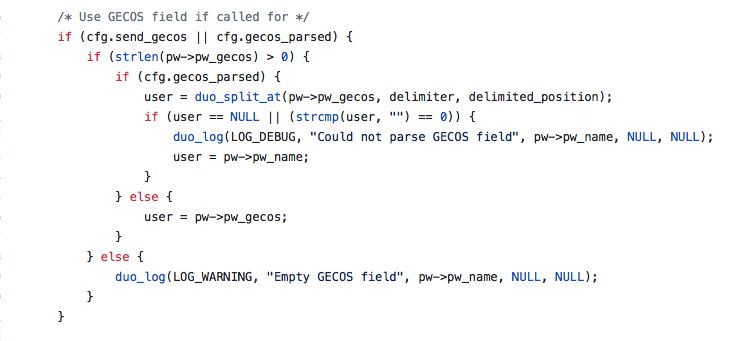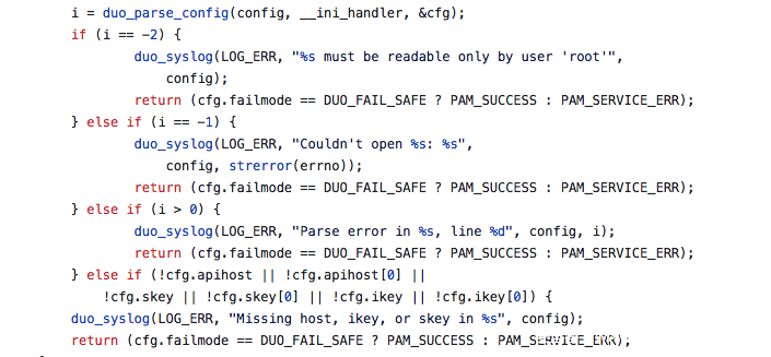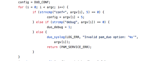 PAM_DUO认证中主要就是pam_sm_authenticate函数的处理,处理时首先会读取DUO的配置文件,之后检测是否配置了其他config文件,有则更新conf的值。此外,也将检测是否配置了debug参数。