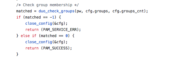 调用duo_check_groups检查认证用户是否是否在DUO认证的配置组中:
