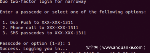 双因子可以使用Google动态令牌,也可以使用Duo Unix,Duo Unix支持App动态口令、短信口令以及电话。