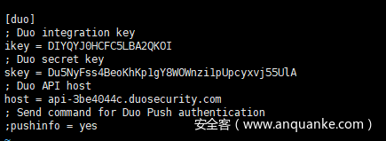 安装后修改配置文件/etc/duo/pam_duo.conf