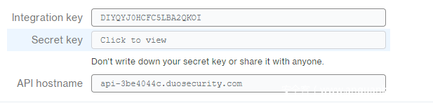 首先需要到DUO官网注册账号,新建一个UNIX Application保护应用,获得Integration key、Secret key、API hostname。